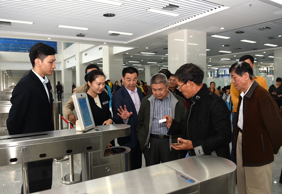 座谈会开始之前,姜宏涛、刘海荣、王修奋等陪同老干部参观新落成的海口汽车总站,姜宏涛董事长亲自当起了“向导”,向老干部介绍海口汽车总站现代化的自助售检系统、智能化调度系统、信息发布系统、安防监控系统以及先进的人脸识别、车牌识别,车辆自动检测、自动报班等功能。老干部们被眼前一座现代化、智能化、生态型道路客运枢纽站所震撼,对公司近年来发展成果给予点赞。
