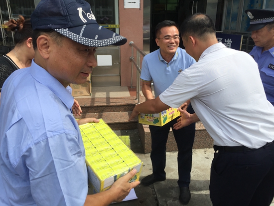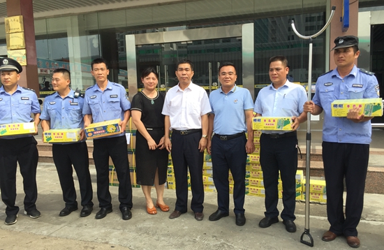 海汽系统2018年综合应急演练将于6月14日在海口汽车西站举行,担负本次演练任务的海口海汽运输公司干部员工,顶着炎炎烈日,进行预演练,个个汗流浃背。6月12日下午,王修奋专职副书记一行来到海口汽车西站演练现场,给在高温下参加预演练的海口海汽运输公司员工送来了8箱凉茶颗粒和100箱菊花茶饮料,王副书记给员工们分发“降温”饮料。大家一个劲儿的喝了起来,笑容在炎炎烈日下绽放。王副书记询问应急演练的准备情况和防暑措施,叮嘱坐阵指挥的海口公司总经理黄刚和党总支书记符索秋要合理安排作息时间,劳逸结合,做好防暑降温工作。